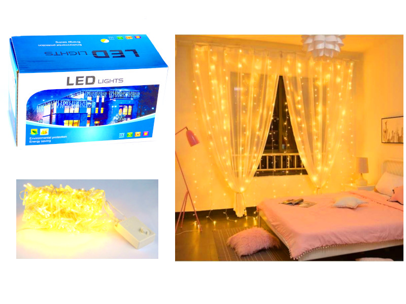 LAMPKI LED KURTYNA ŚWIETLNA 3x 3M 300 LED KOLOR CIEPŁY