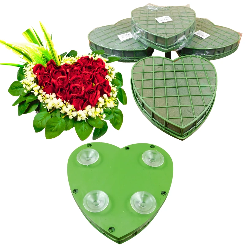 UCHWYT NA KWIATY Z PRZYSSAWKĄ W KSZTAŁCIE SERCA Z GĄBKĄ FLORYSTYCZNĄ DO ŻYWYCH KWIATÓW