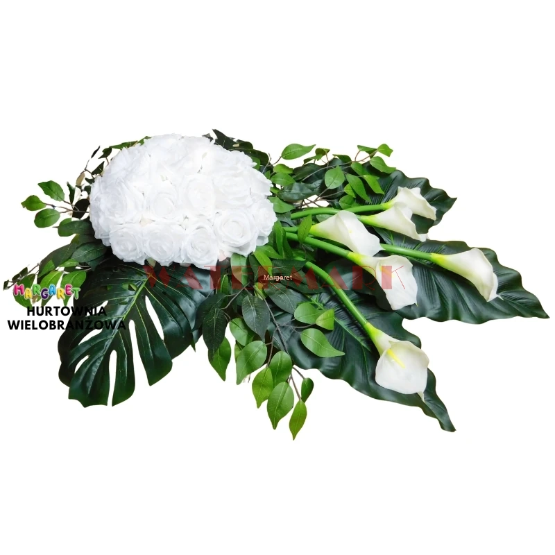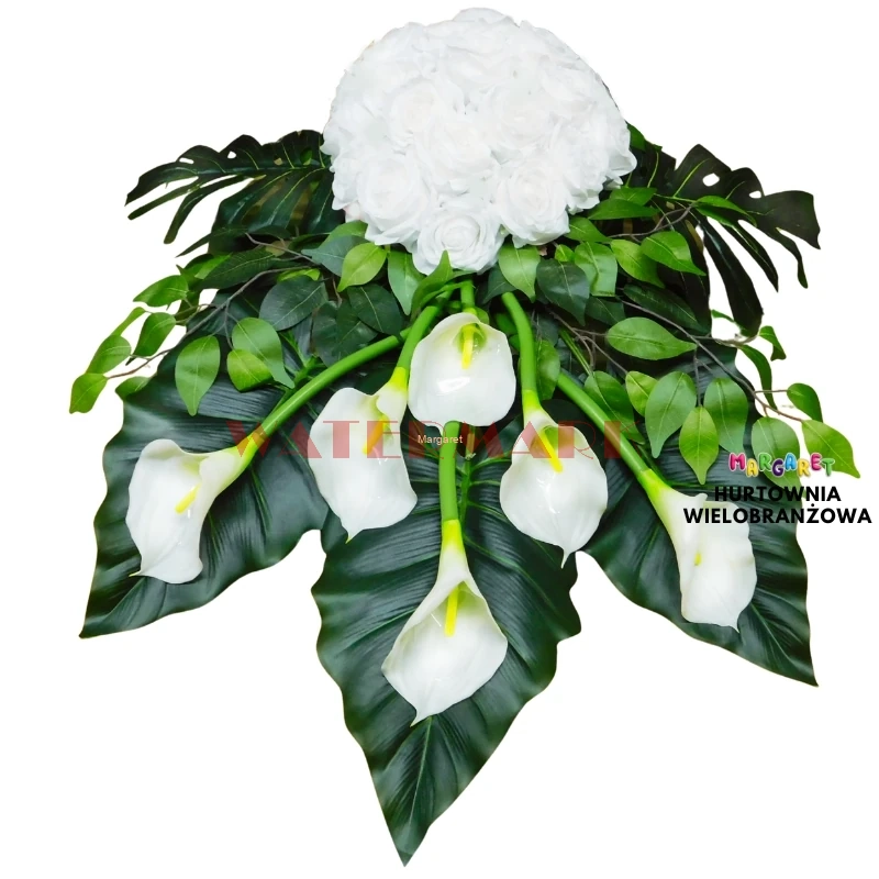 EKSKLUZYWNA KOMPOZYCJA KSZTAŁT KULI Z RÓŻ GUMOWANE KALIE LIŚCIE JAKOŚĆ PREMIUM