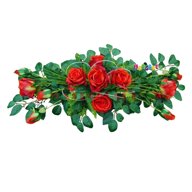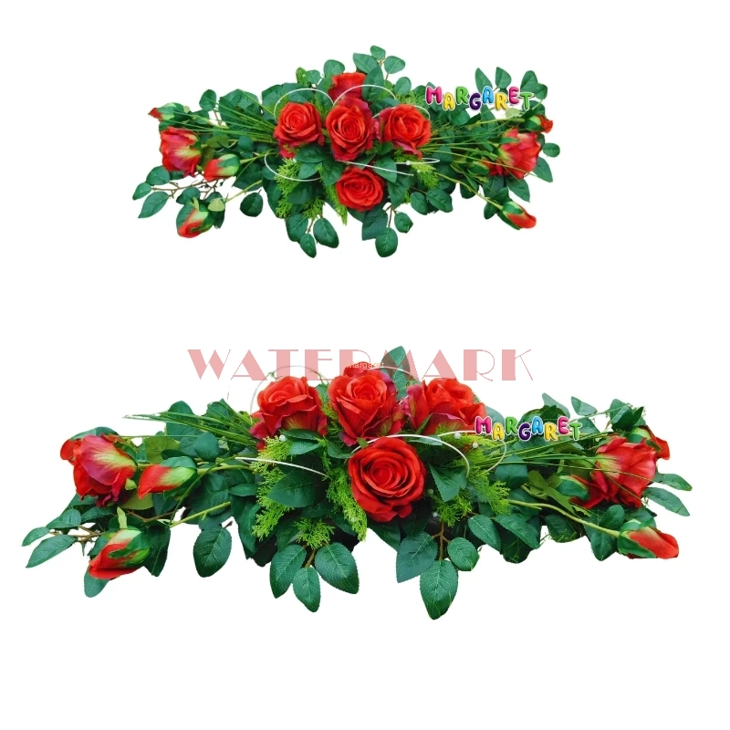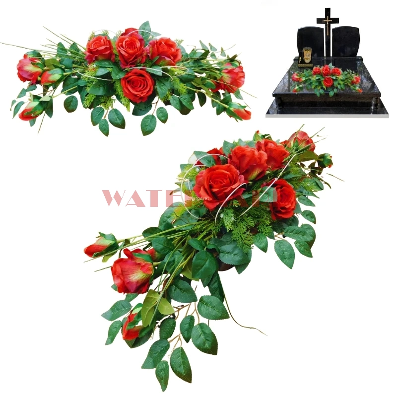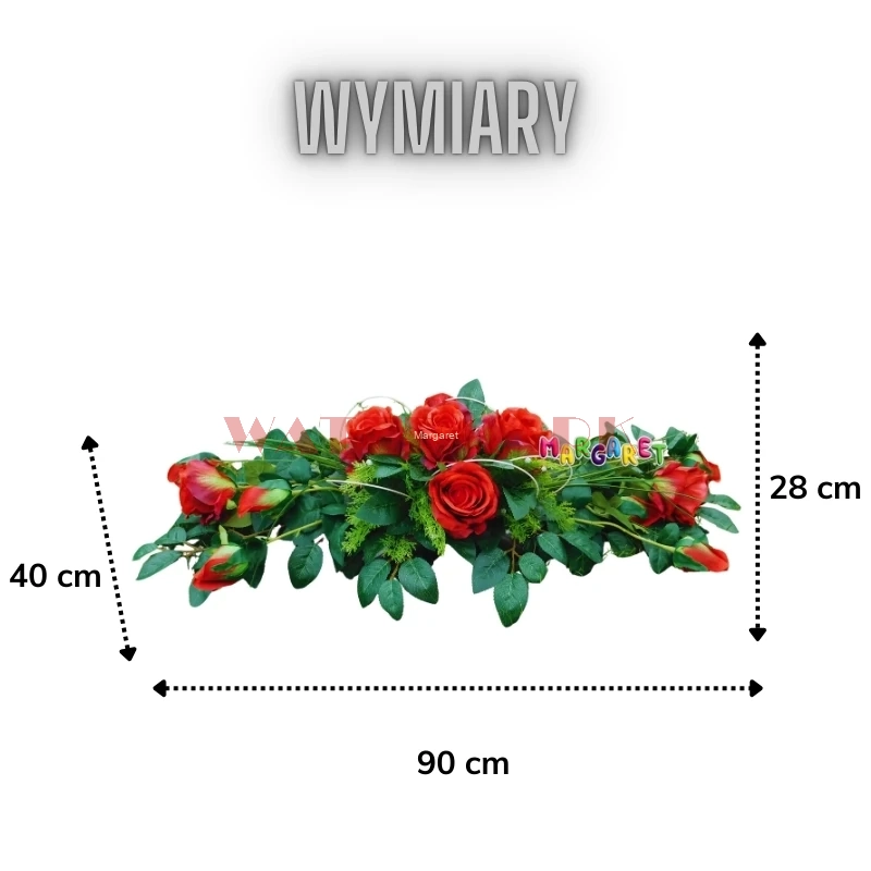 KOMPOZYCJA NAGROBNA WIĄZANKA WIENIEC 90 CM RÓŻE CZERWONO ZIELONE Z TRAWĄ