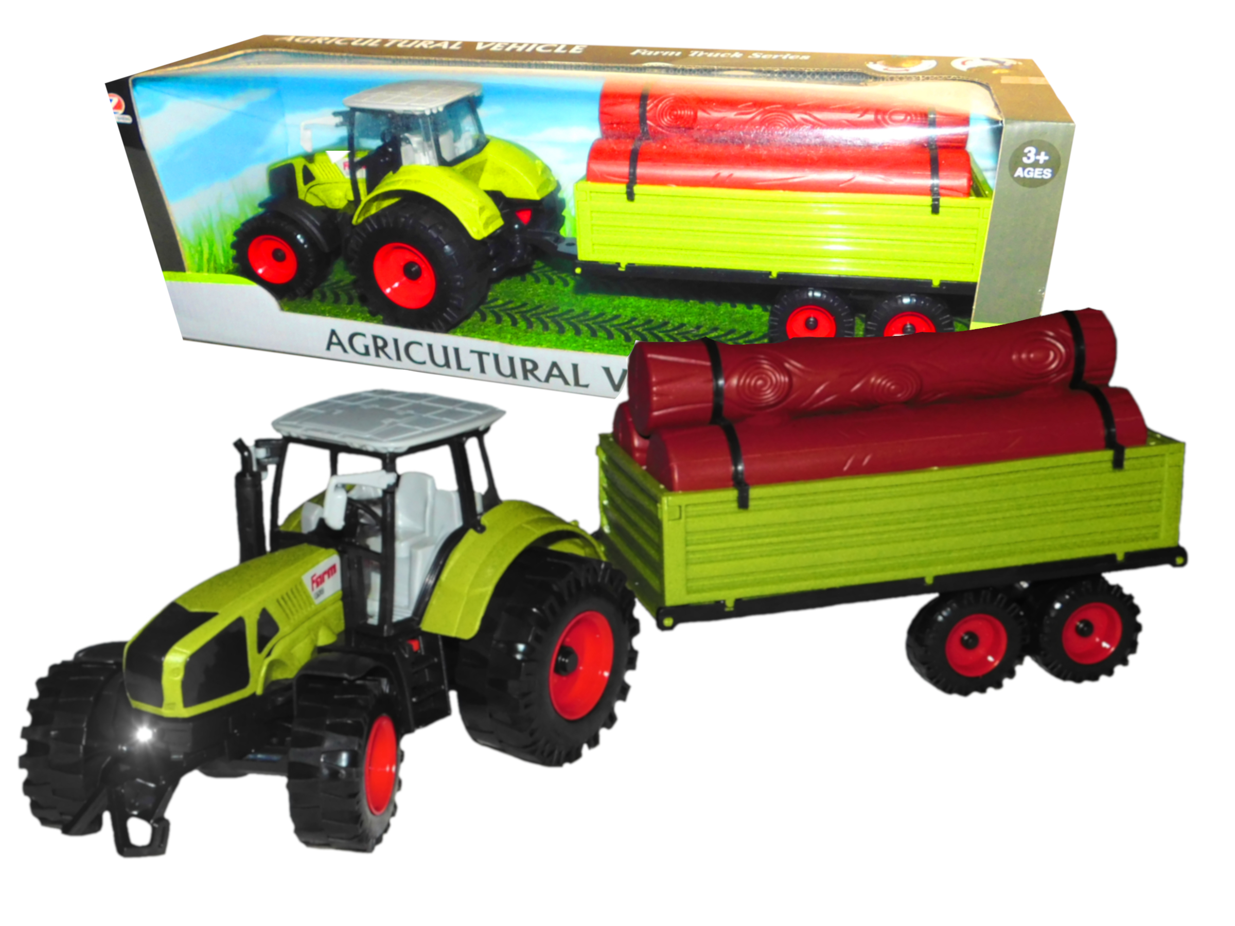 TRAKTOR Z PRZYCZEPĄ Z DREWNEM DŹWIĘK ŚWIATŁA NAPĘD