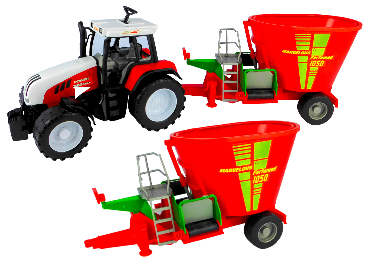 DUŻY TRAKTOR + PASZOWÓZ MIESZALNIK PASZ 64 CM RUCHOME ELEMENTY