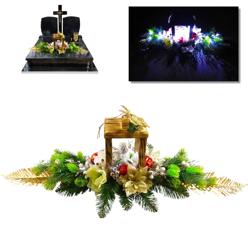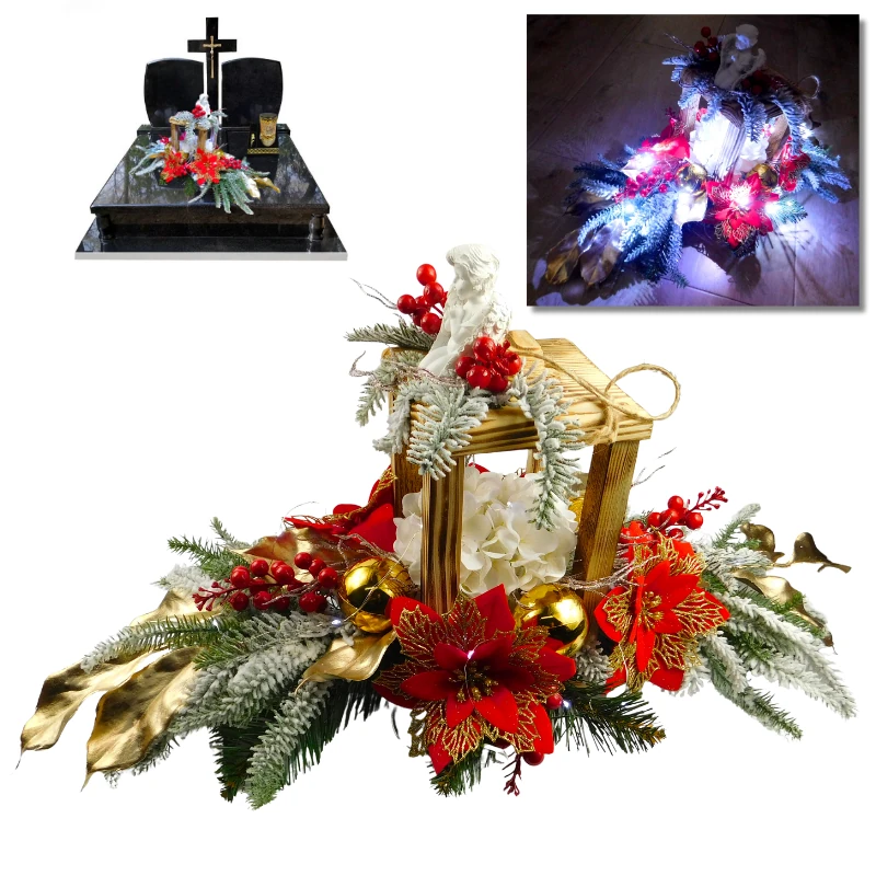 STROIK BOŻONARODZENIOWY NA CMENTARZ LAMPION LED GWIAZDA BETLEJEMSKA ZŁOTE BOMBKI