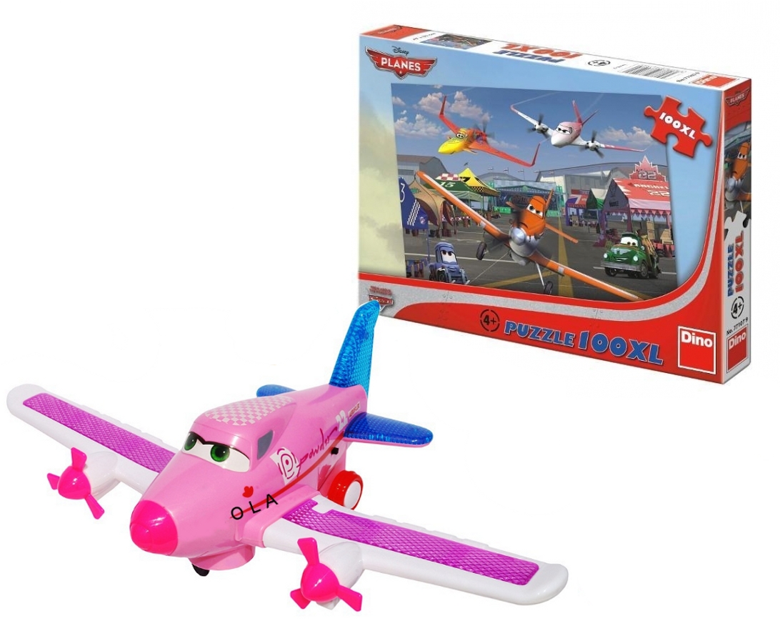 DUŻY SAMOLOT DLA DZIECI DUSTY PLANES 38 cm ŚWIECI DŹWIĘK + PUZLE 100 EL 4+