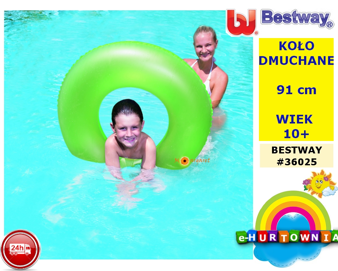 KOŁO DO PŁYWANIA BESTWAY 36025 91 cm KOLOR ZIELONY 10+