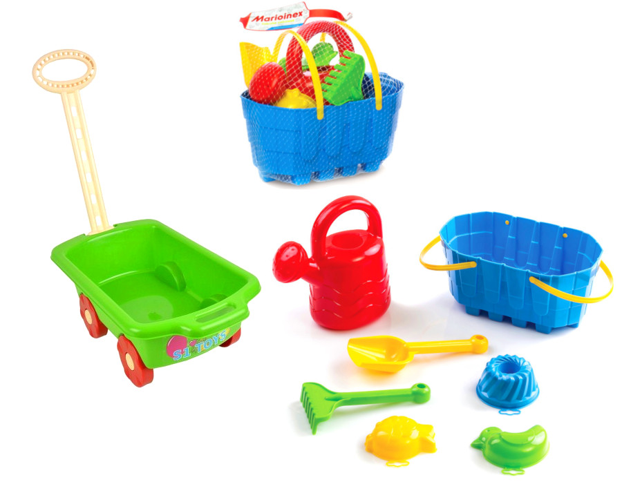 ZABAWKI DO PIASKU MŁYNEK ŁOPATA GRABKI FOREMKI MARIOINEX