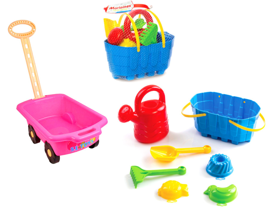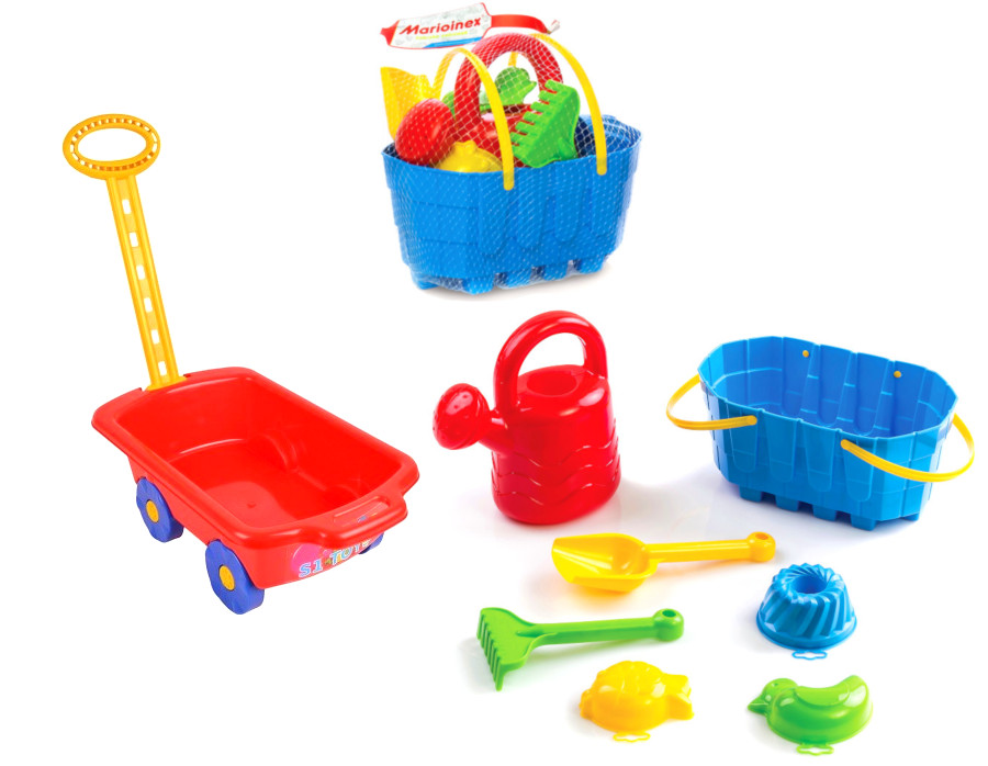 ZABAWKI DO PIASKU MŁYNEK ŁOPATA GRABKI FOREMKI MARIOINEX