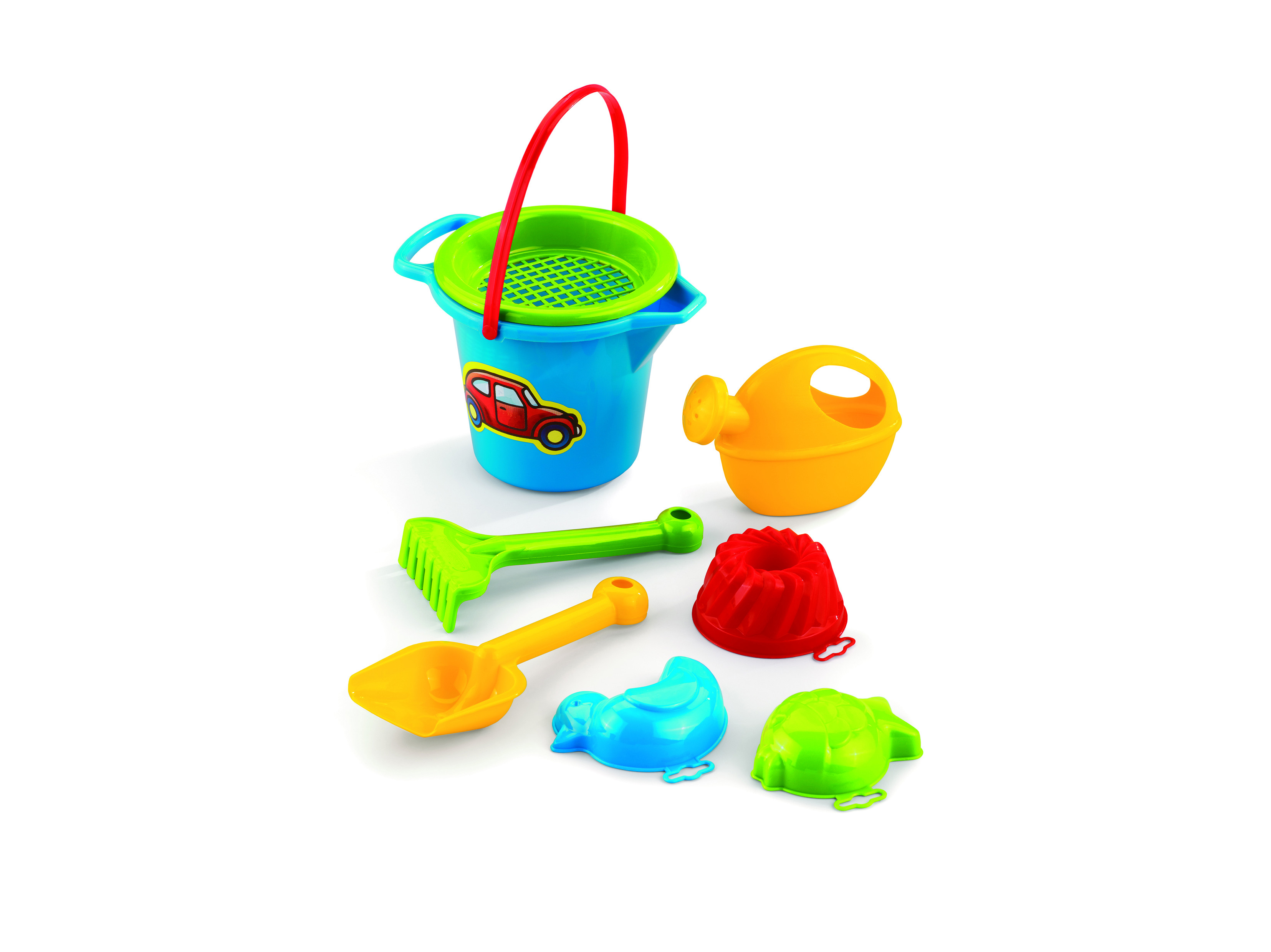 KOMPLET MAŁY WIADERKO SITKO GRABKI ŁOPATKA FOREMKI 178 + WYWROTKA