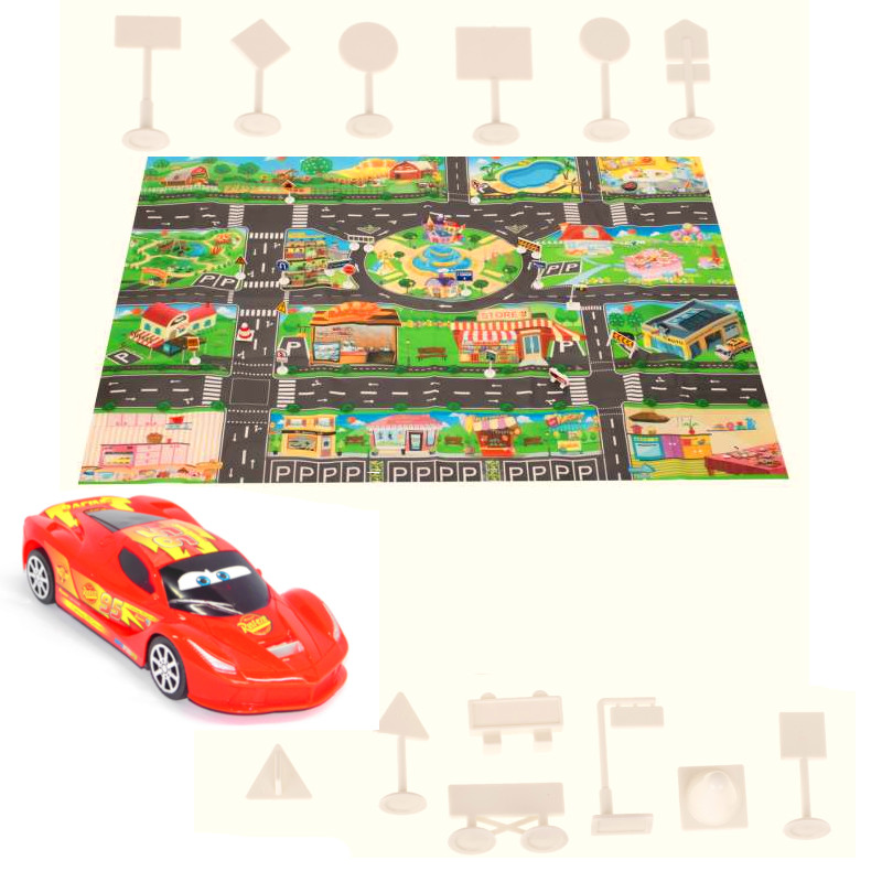 MATA DO ZABAWY MIASTO I ULICA WODOODPORNA 130 x 100 CM + AUTO CARS
