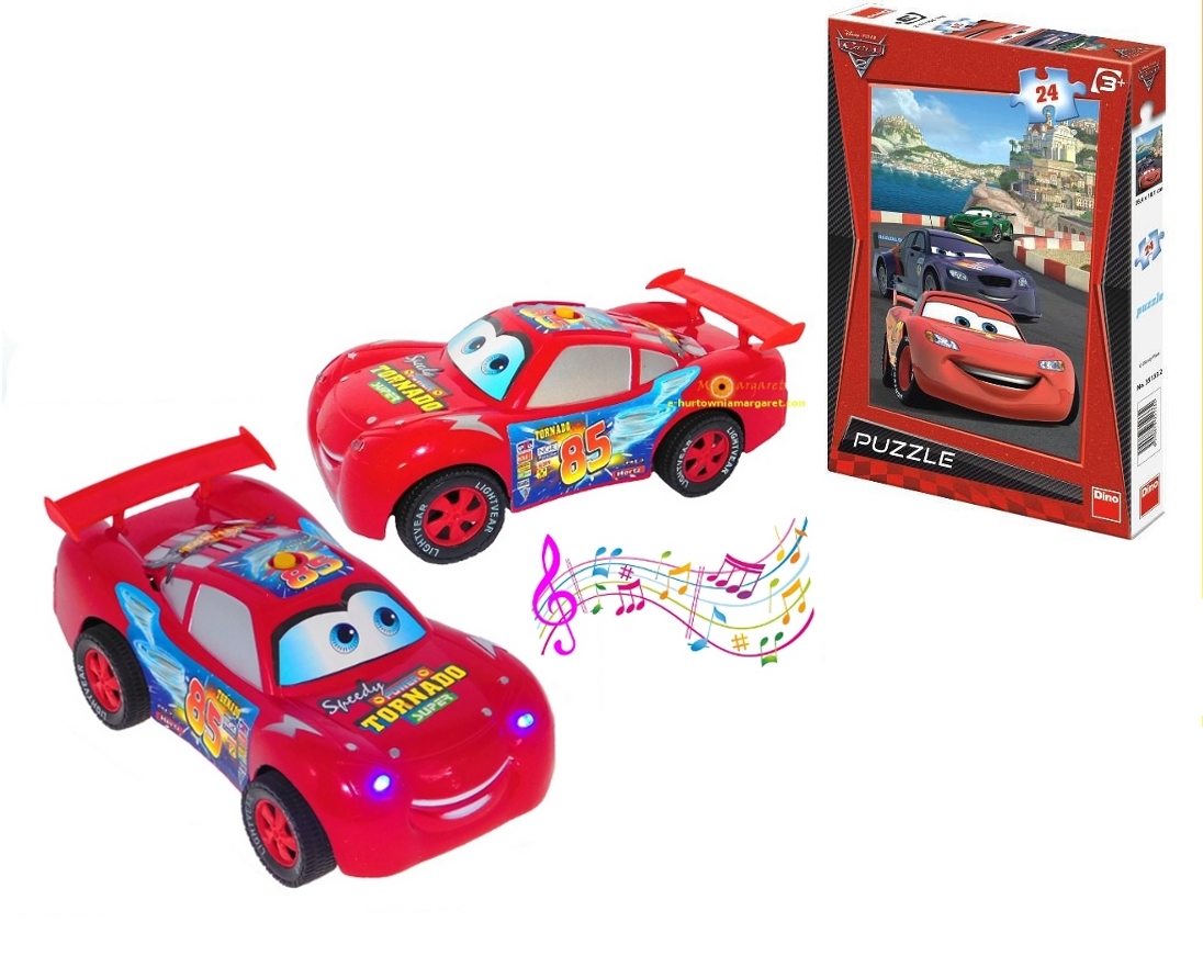 AUTO CARS ZYGZAK MCQUEEN 15 CM NAPĘD DŻWIĘK ŚWIATŁO Z PUZZLAMI CARS