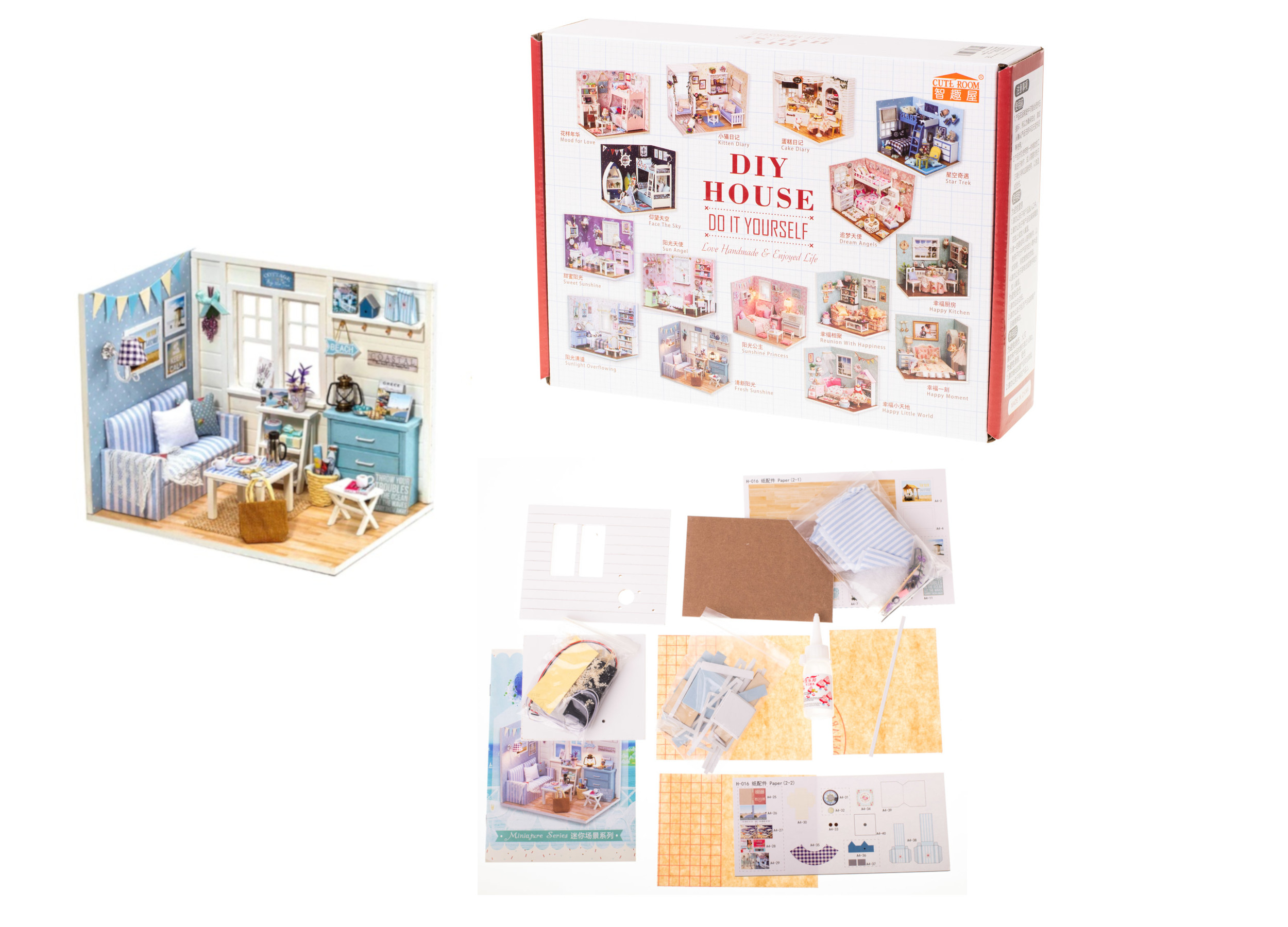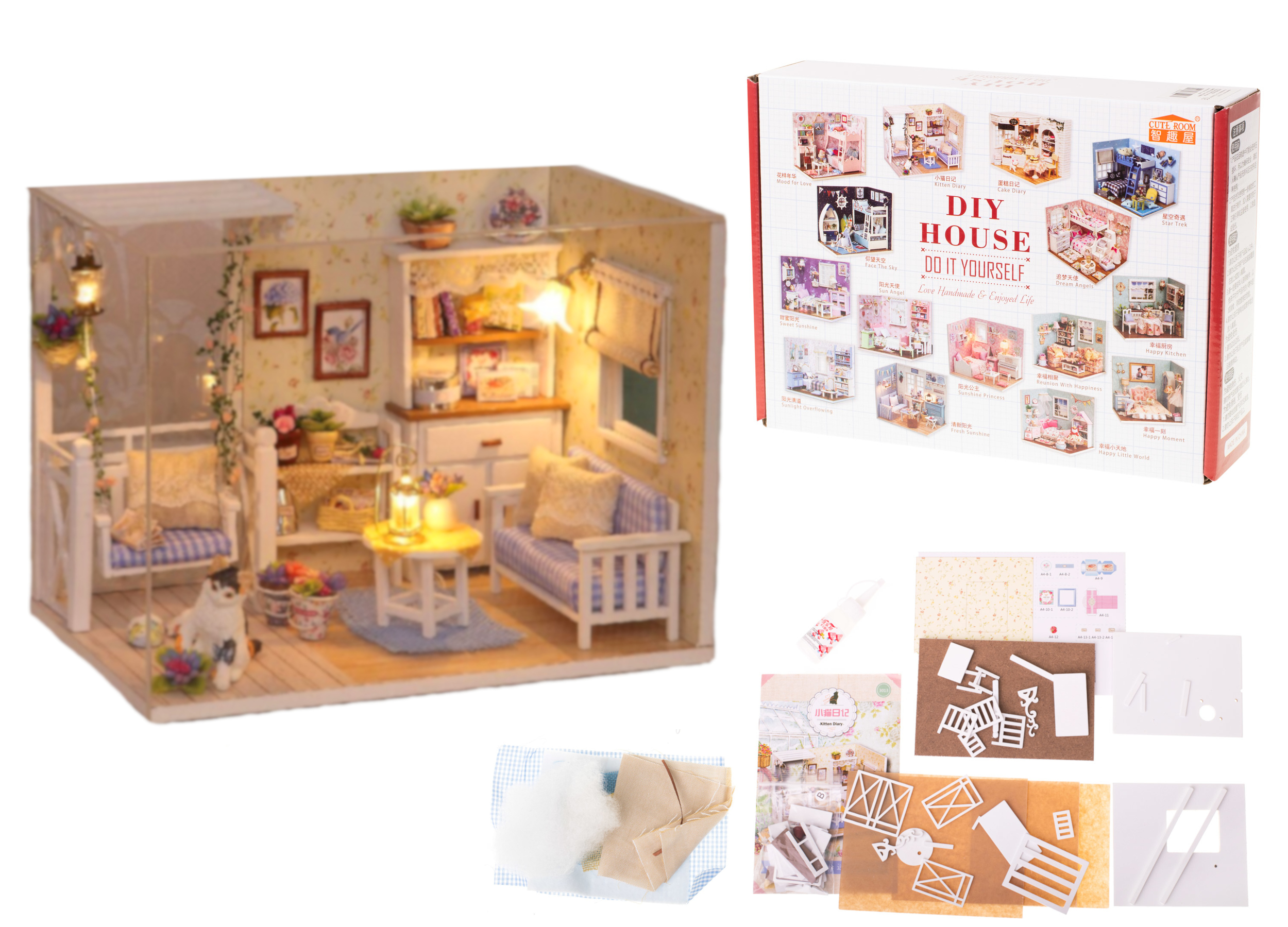 DOMEK DLA LALEK DREWNIANY Z OŚWIETLENIEM DOMEK DO SKLEJANIA STYL RETRO