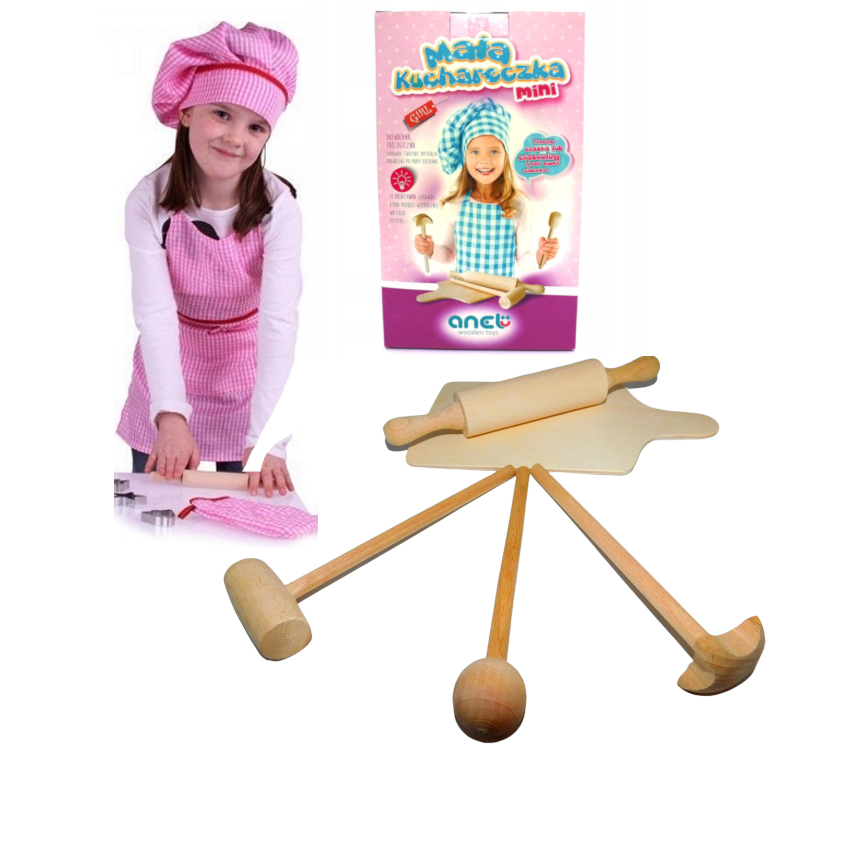 ZESTAW MAŁA KUCHARKA DREWNIANA DLA DZIECI AKCESORIA KUCHENNE