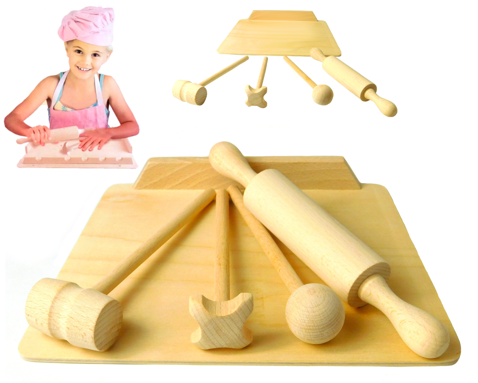 ZESTAW STOLNICA DREWNIANA DLA DZIECI AKCESORIA KUCHENNE