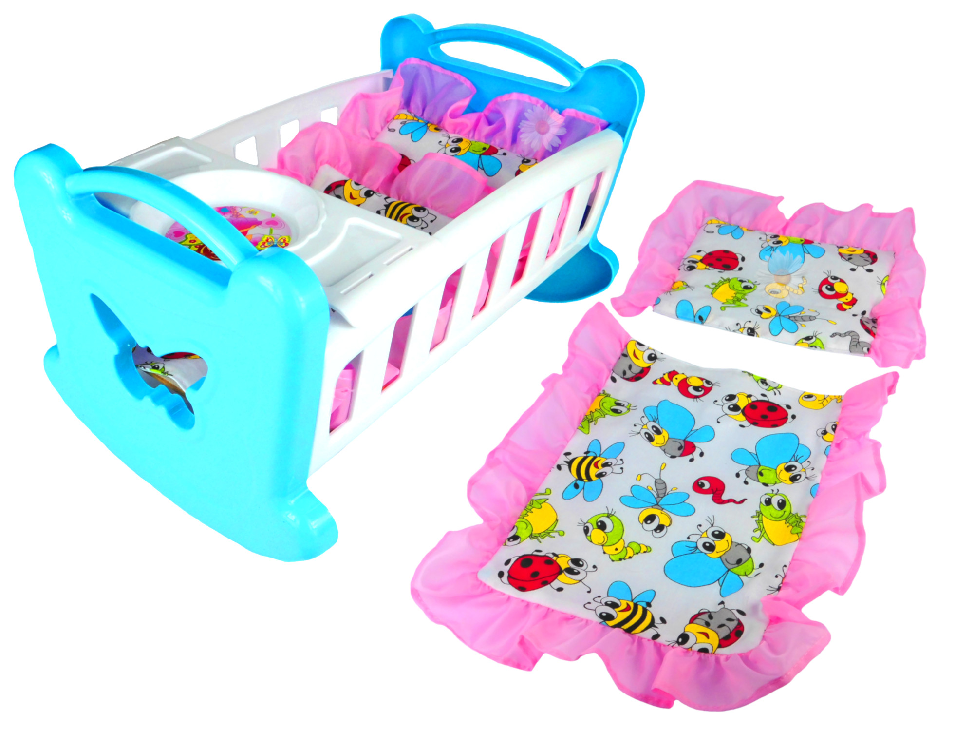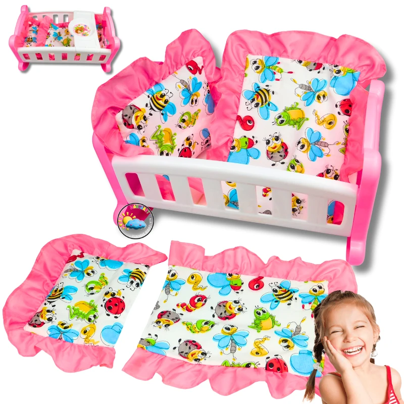 KOŁYSKA DLA LALEK MOTYLEK Z POŚCIELĄ TACKĄ DO KARMIENIA I LALKĄ