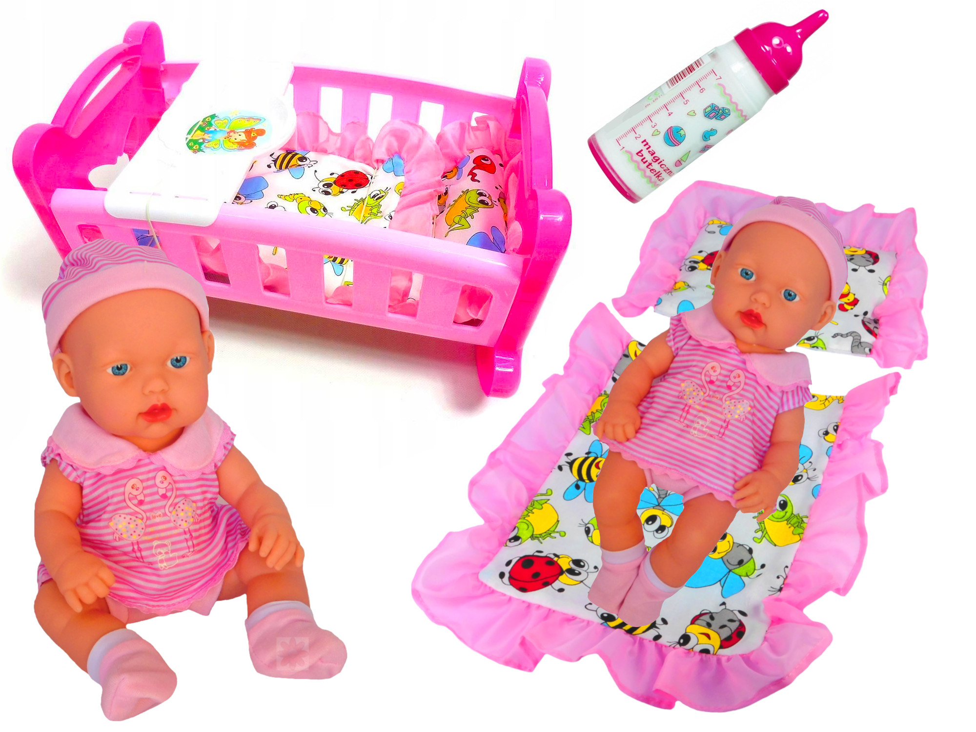 LALKA JAK ŻYWA 32CM BOBAS BABY MÓWI ŚPIEWA SIKAJĄCA KOŁYSKA Z POŚCIELĄ