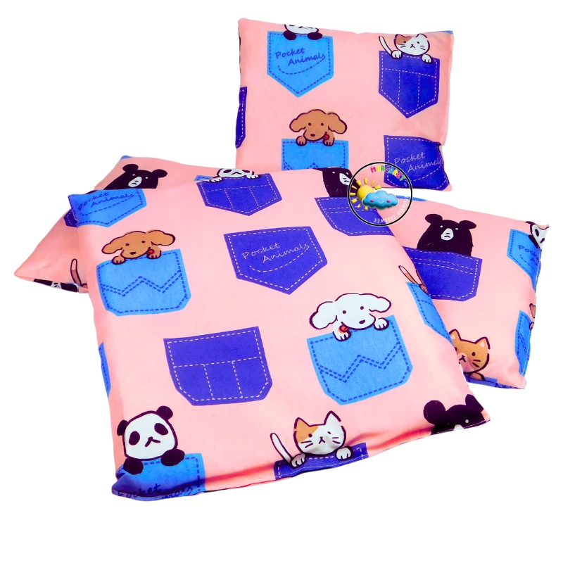 KOMPLET POŚCIELI DLA LALEK 3 CZĘŚCIOWY KOLOR RÓZOWY WZÓR KACZUSZKI