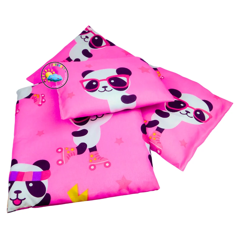 KOMPLET POŚCIELI DLA LALEK 3 CZĘŚCIOWY KOLOR CIEMNY RÓŻ WZÓR PANDA