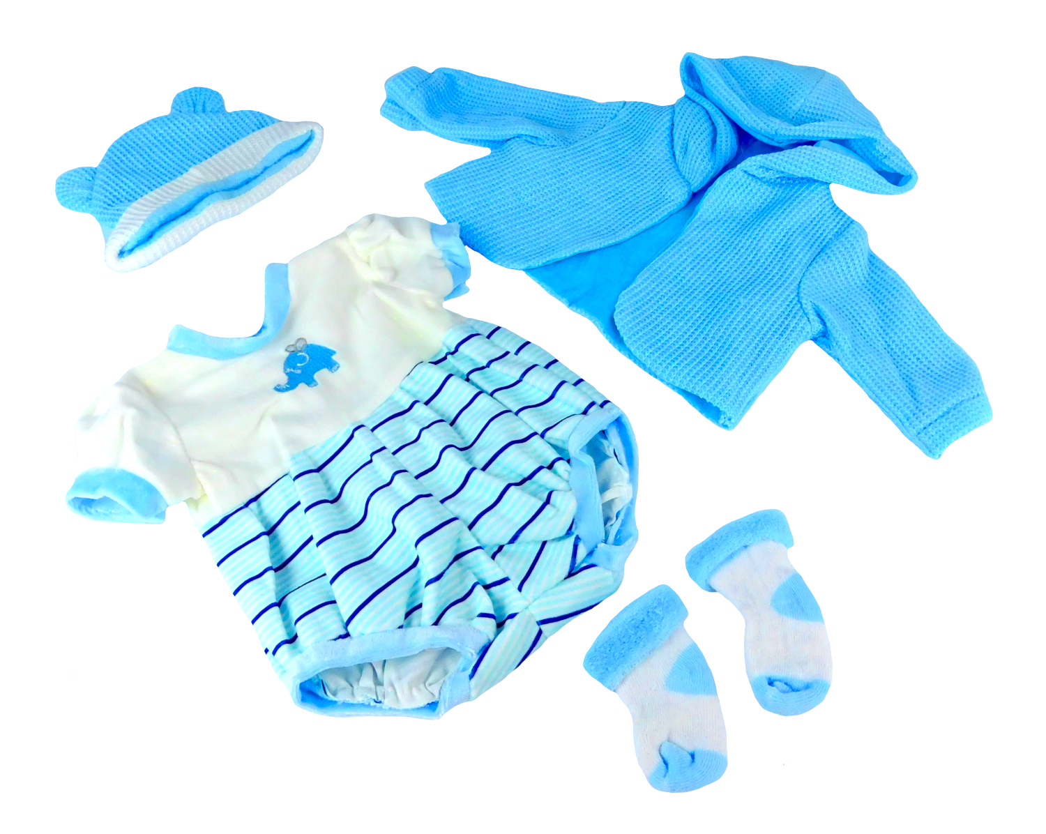 UBRANKO CIUSZKI DLA LALKI BOBAS 45 CM NIEBIESKIE ŚPIOSZKI BIAŁY KAFTANIK