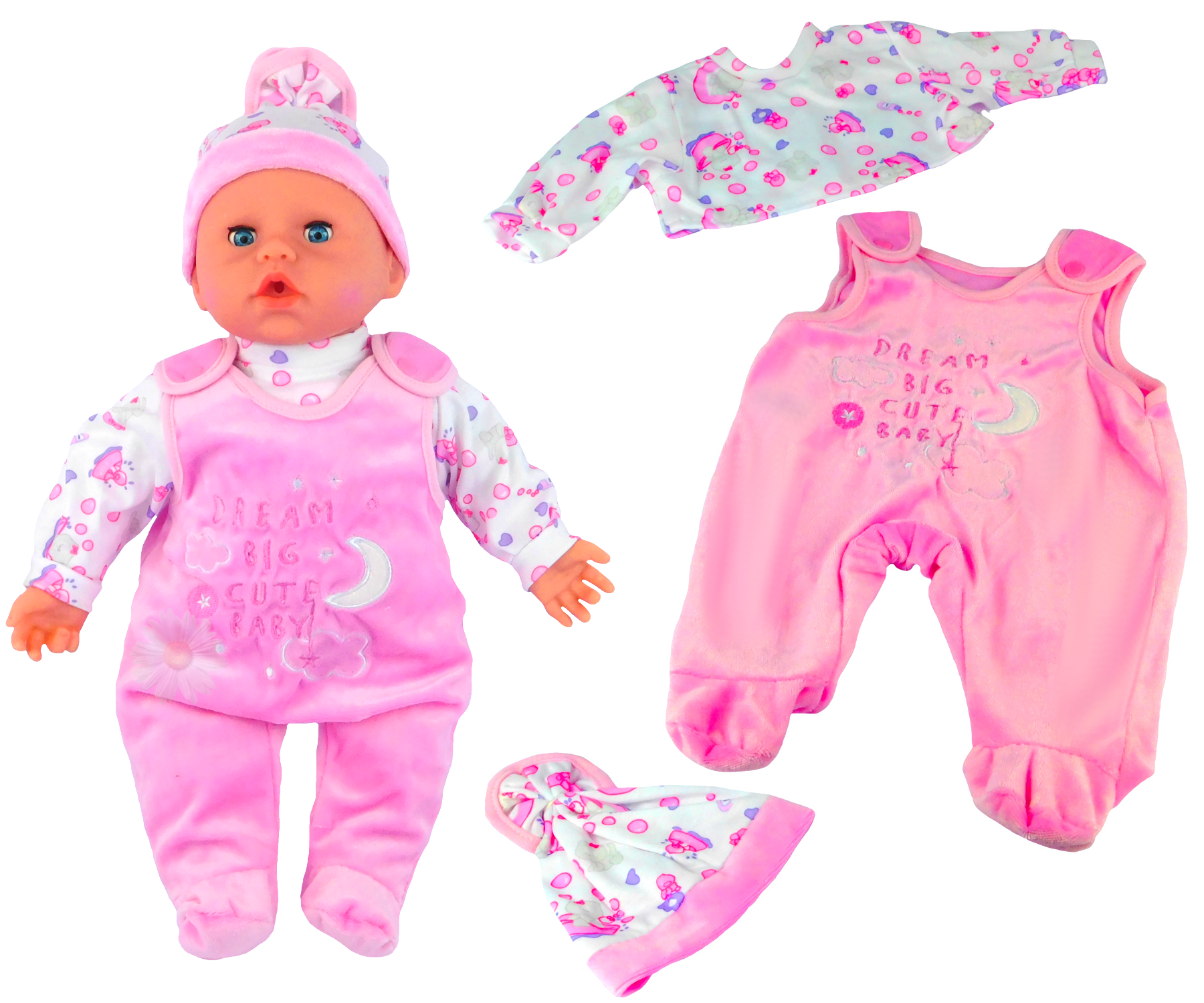 UBRANKO DLA LALKI BOBAS 45 CM KURTECZKA RÓŻOWA ŚPIOSZKI RAMPERSY CZAPKA