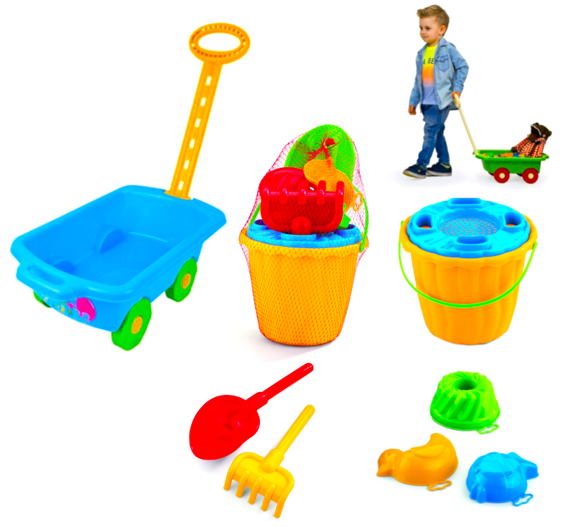 Zestaw do piasku wywrotka z wózkiem do piasku i kompletem do piasku