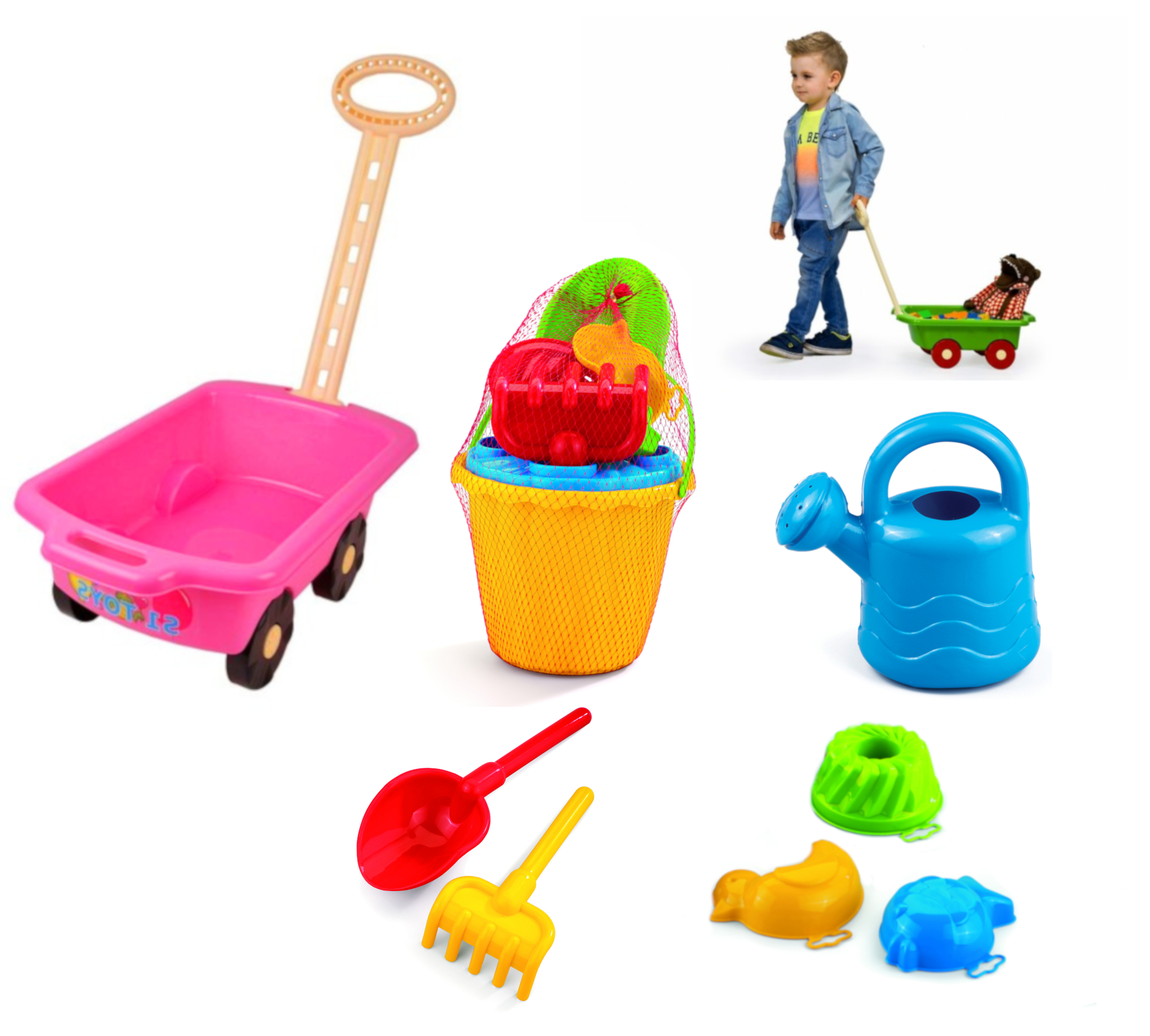 Różowy wózek dla dziewczynki do piasku z kompletem do piasku