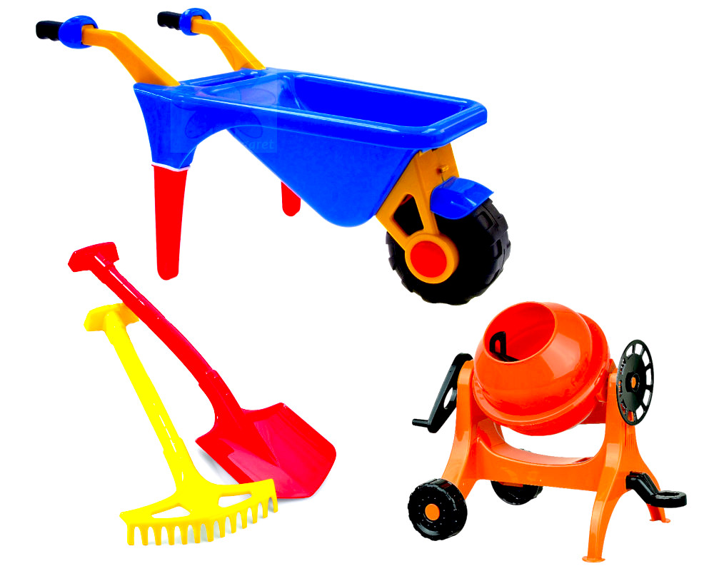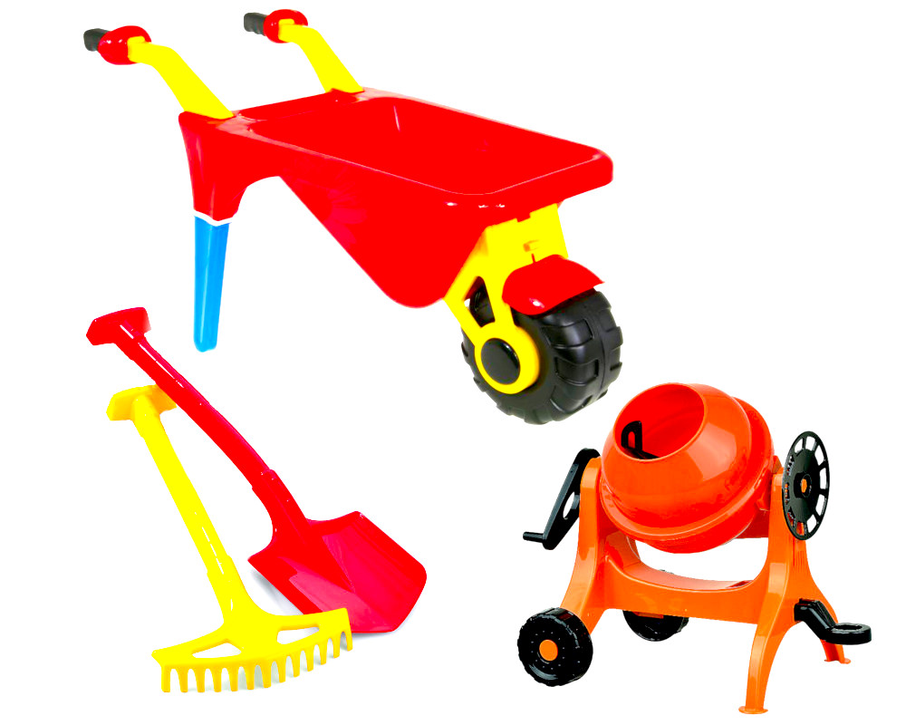 TACZKA DO PIASKU Z TERKOTEM LESZKO + BETONIARKA LENA + GRABIE I ŁOPATA