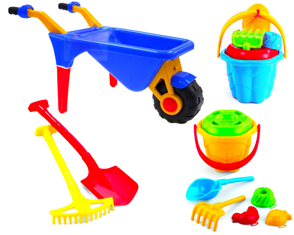 WÓZEK Z RĄCZKĄ PRZYCZEPKA DO PIASKU I KOMPLET POLA