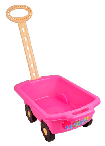 WÓZEK Z RĄCZKĄ PRZYCZEPKA TACZKA DO CIĄGNIĘCIA DO PIASKU RÓŻOWA