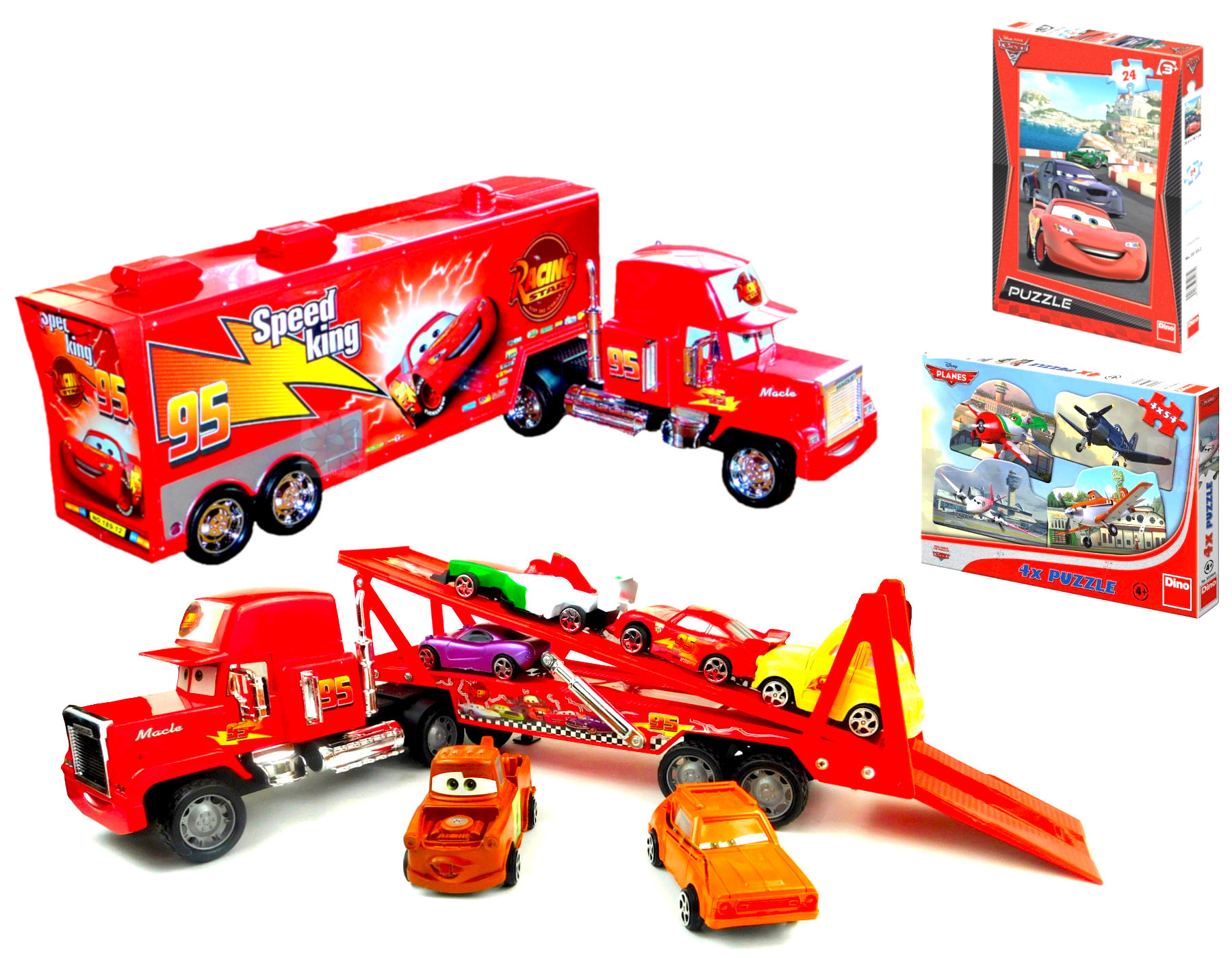 DUŻY TIR MANIEK KONTENER Z BAJKI 55 CM MINI LAWETKA Z AUTKAMI CARS DLA DZIECI