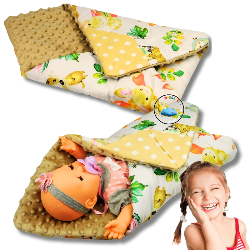 DUŻY BECIK ROŻEK DLA LALEK 45 x 45 CM NA RZEP BAWEŁNA MINKY WZÓR BAŚNIOWE ZWIERZAKI