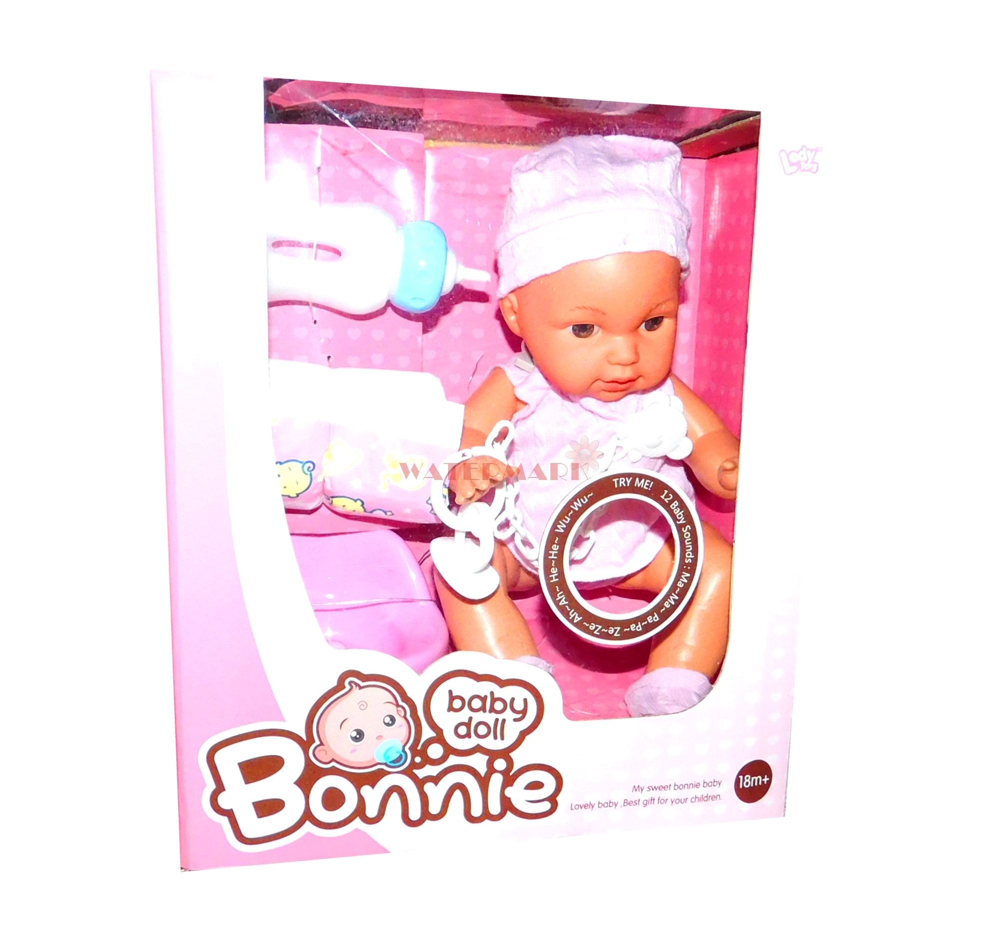 Lalka gaworzy, śmieje się, płacze, mówi słowa mama, tata.