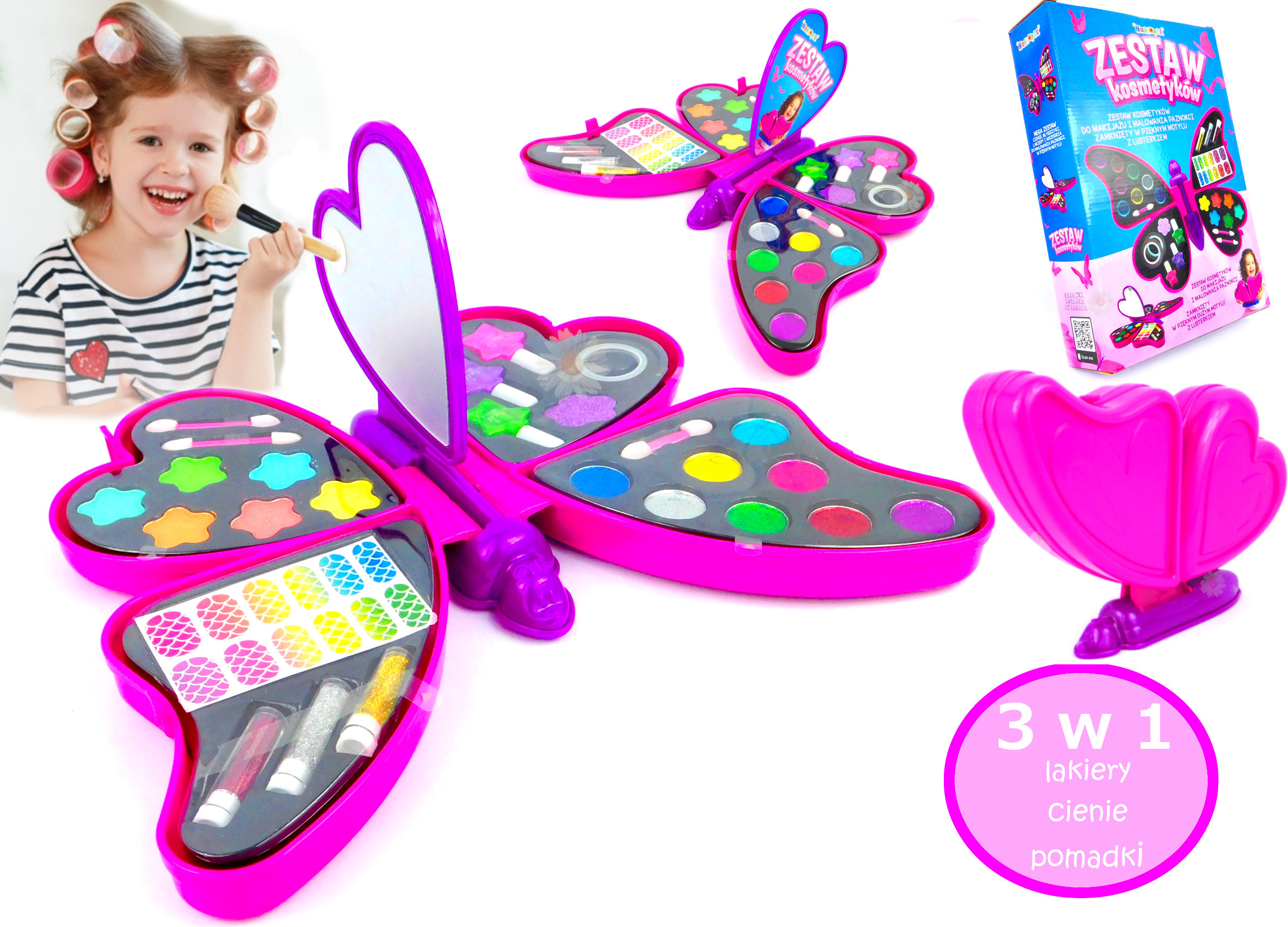ZESTAW DO MAKIJAŻU LAKIERY CIENIE POMADKI W DUŻYM MOTYLU