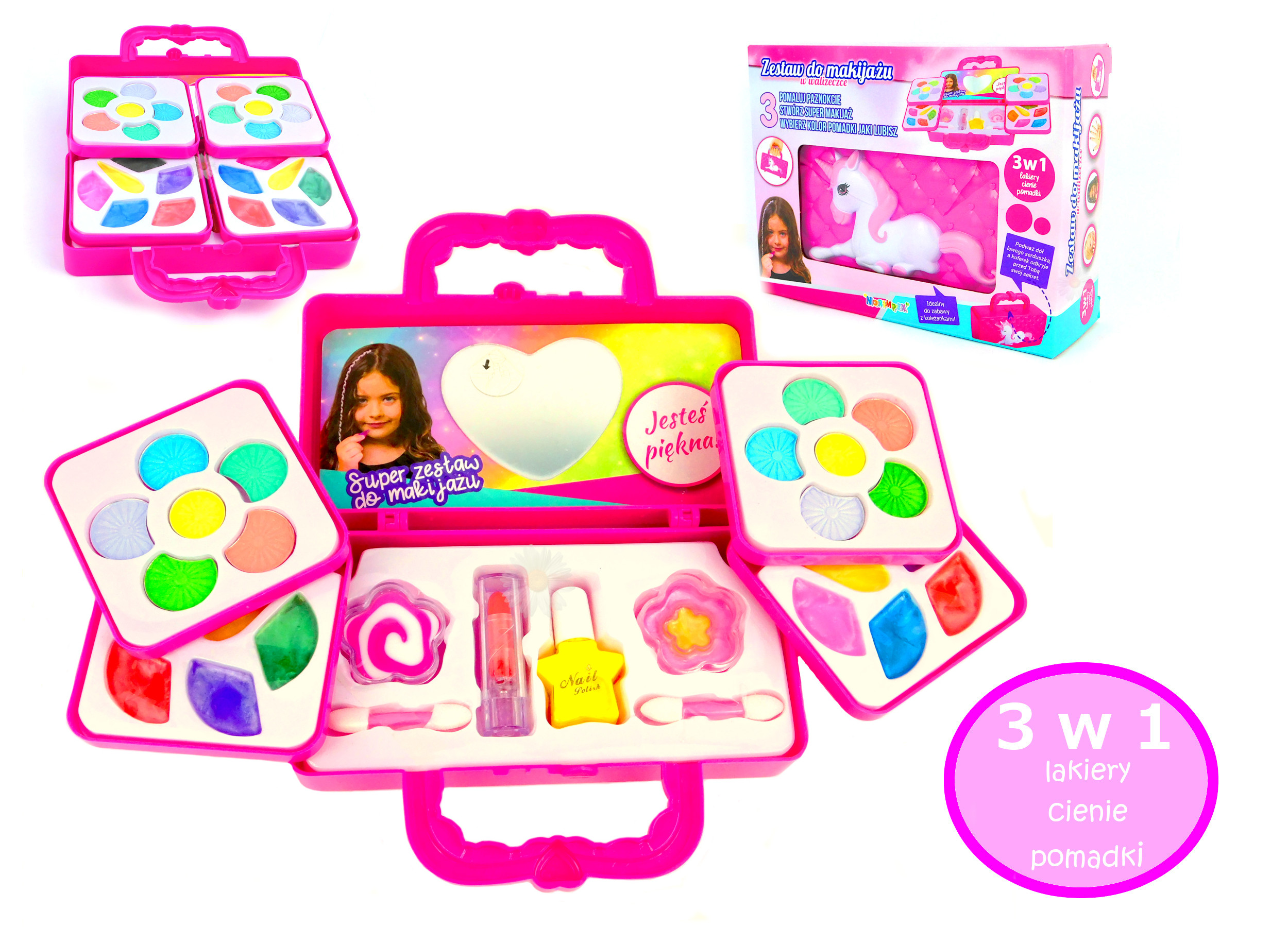 ZESTAW DO MAKIJAŻU LAKIERY CIENIE POMADKI W WALIZCE Z JEDNOROŻCEM